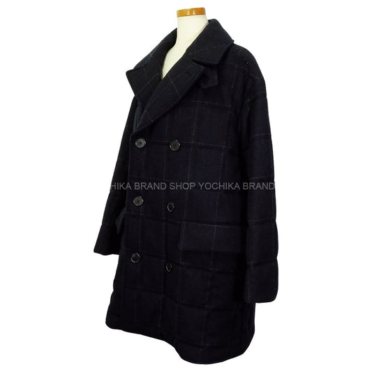 [Pre-loved] 2023AW HERMES Men's Double Button Kilting Check Padded coat Noir (Black) Wool/Cashmere #46 PT9610[LIKE NEW][Authentic]