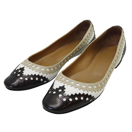 [Pre-loved] HERMES Flat Shoes Ghillies Wing tip Blanc (White)/Noir (Black)/Beige Calfskin Chevre #37[USED A][Authentic]