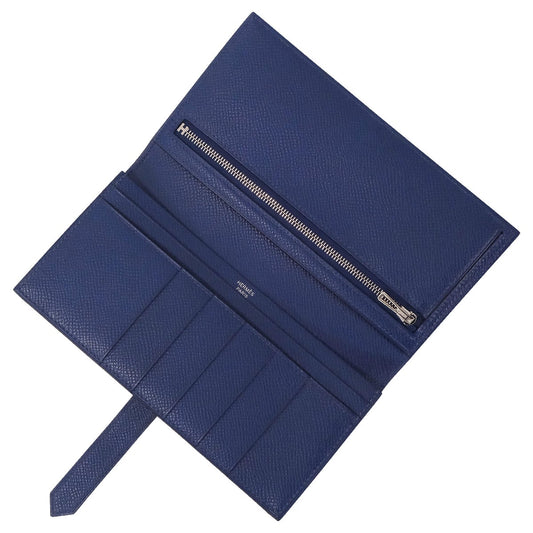HERMES long wallet Bearn Soufflet Blue Navy Veau Epsom Silver HW Stamp K[BRAND NEW][Authentic]