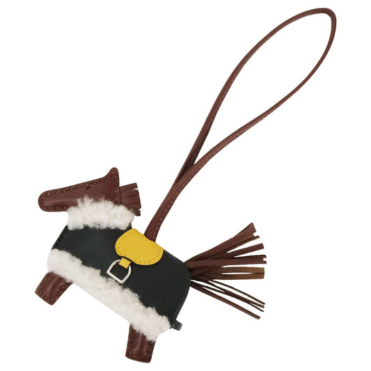 HERMES bag charm Rodeo Robeo Plush PMTail/Paille/Black/Ecru Agneau Milo/Veau Swift Silver HW Stamp G[BRAND NEW][Authentic]