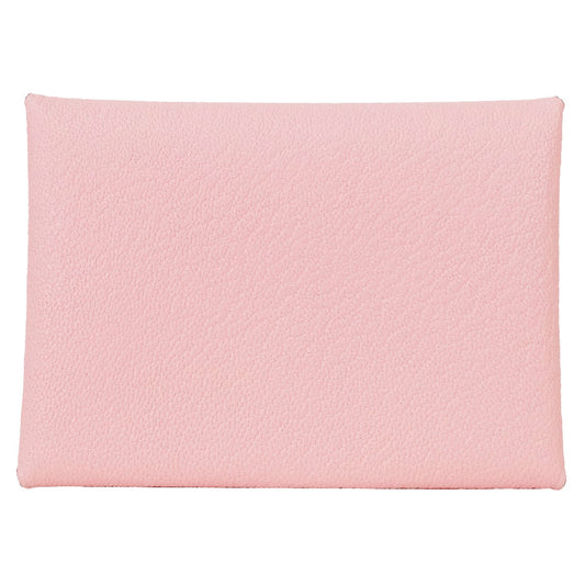 HERMES card holder Calvi Duo Rose Sakura Chevre Mysore Silver HW Stamp W[EXCELLENT][Authentic]