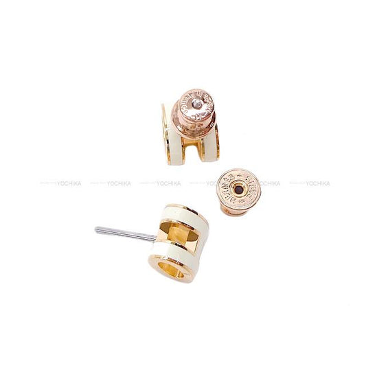 HERMES pierced earring Mini Pop H Blanc (White) Rose Gold Plated/lacquer[BRAND NEW][Authentic]