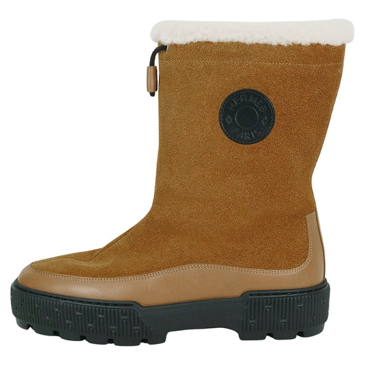 HERMES boots Ladies’ Journey Rubber Sole Brown Suede/Shearling 36[EXCELLENT][Authentic]