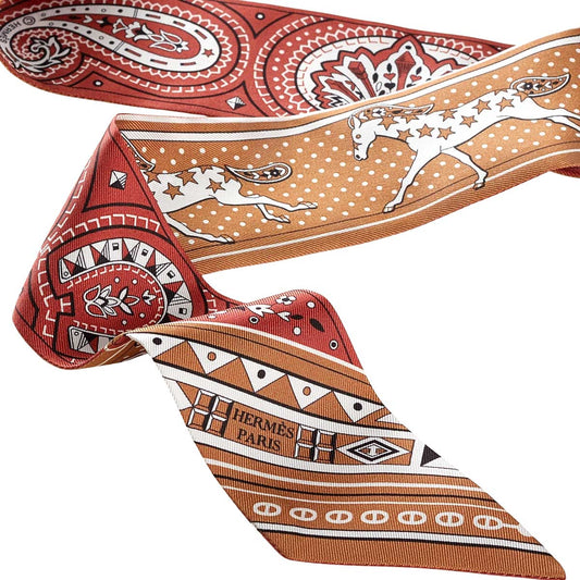 HERMES scarf Twilly Cheval de Coeur BandanaCaramel/Terre de Sienne/Blanc(White) Silk100%[BRAND NEW][Authentic]