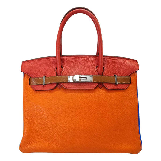 [Pre-loved] 2012AW HERMES Handbag Birkin30 Arlequin Orange/Etain/Sanguine//Bleu Hydra/Bleu Lin/Gold Taurillon Leather Silver HW Stamp □Q[USED SA][Authentic]