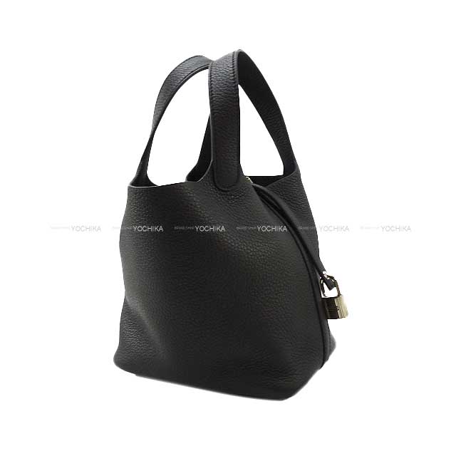 HERMES Handbag Picotin Lock 18 PM Noir (Black) Taurillon Clemence Silver HW Stamp B[EXCELLENT][Authentic]