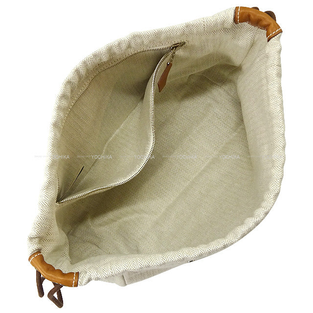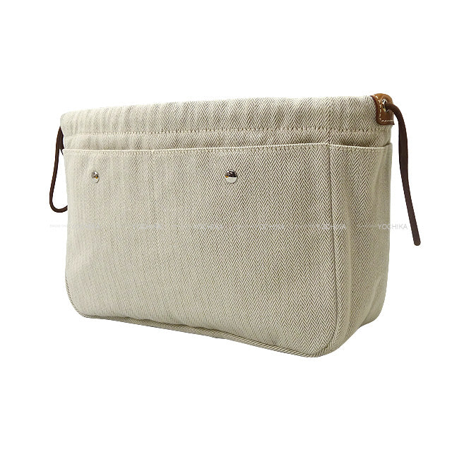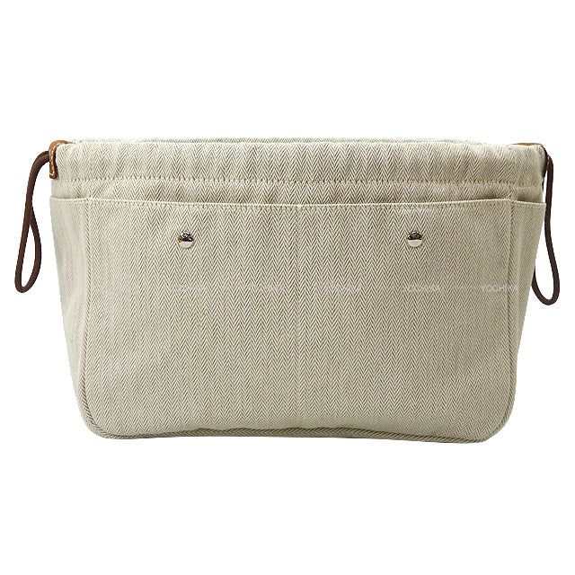 We are pleased to present the Hermes bag-in-bag "Fourbi 25." Crafted in a refreshing combination of Ecru and Fauve, this refined piece pairs durable Toile Chevron with luxurious Barenia leather for an elegant finish. The silver hardware adds a polished accent, perfectly balancing practicality with timeless design. The interior of your bag can be neatly organized, while the side drawstrings allow you to cinch it closed like a pouch. Its sturdy construction helps protect the inner leather of your Birkin from scratches and stains, ensuring peace of mind. As expected from Hermes, every detail is executed with the utmost care. Compatible with Birkin 30. Color:Ecru/Fauve Material:Toile Chevrons/Veau Barenia Buckle:Silver HW Accessories:No accessories Specification: [Outer pocket]
