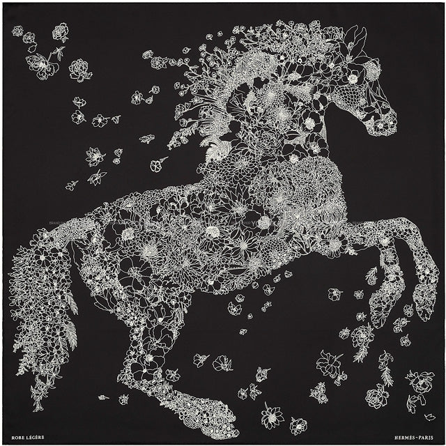 The 2022 autumn/winter Carré 90 "Robe Legere" has arrived from Hermes! This horse pattern drawn with various flowers is a Hermes-like design that attracts the eyes of the surroundings. You can enjoy the delicate techniques and patterns just by looking at them. You can wear it around your head for a trendy hairstyle, attach it to a bag, use it as an inner cloth for a basket bag, use it as a wrapping cloth, or use it as an interior fabric. Recommended as a gift. Please enjoy your own arrangement. Color:Noir (Black)(89)/Blanc (White)(01) Material:Silk100% Accessories:box Additional info: Product Condition: EXCELLENT SKU:25081806