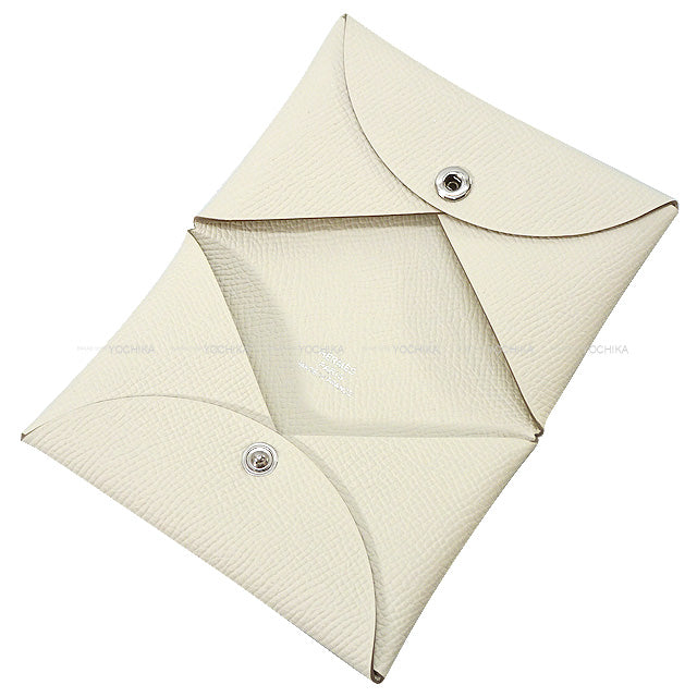 HERMES card holder Calvi Craie Ever Grain Silver HW Stamp U[EXCELLENT][Authentic]