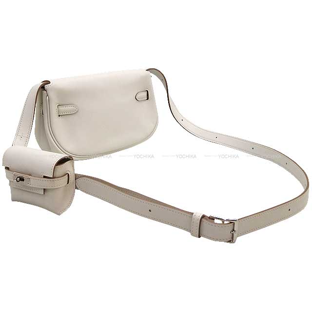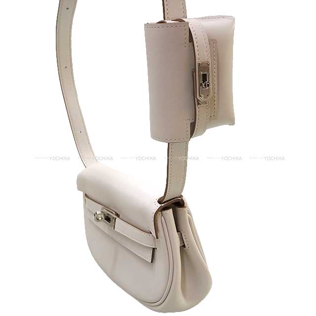 The casual shoulder bag which came up from ""Kelly"" series of Hermes was arrived! It is characterized by a silhouette with the roundness and is also called ""Banana Kelly"". The mini-porch is attached, and it is good to put an accessory or a wireless earphone. The color is Gris Perle that is refined color, and is refreshing. How about in a reward for you and a present to important one? Color:Gris Perle(80) Material:Evercalf Shoulder:19~82cm Buckle:Silver HW Accessories:box、storage bags Additional info: Product Condition: BRAND NEW SKU:24061307