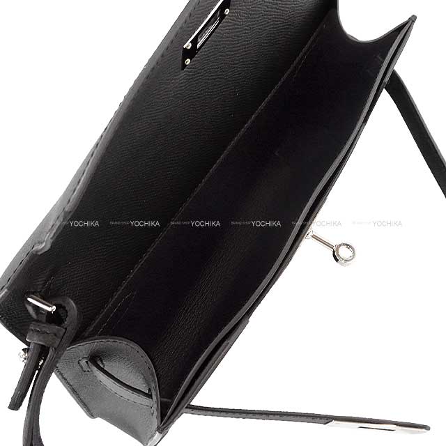 HERMES Clutch bag Kelly Depeche 25 Clutch Noir (Black) Ever Grain Silver HW Stamp D[EXCELLENT][Authentic]