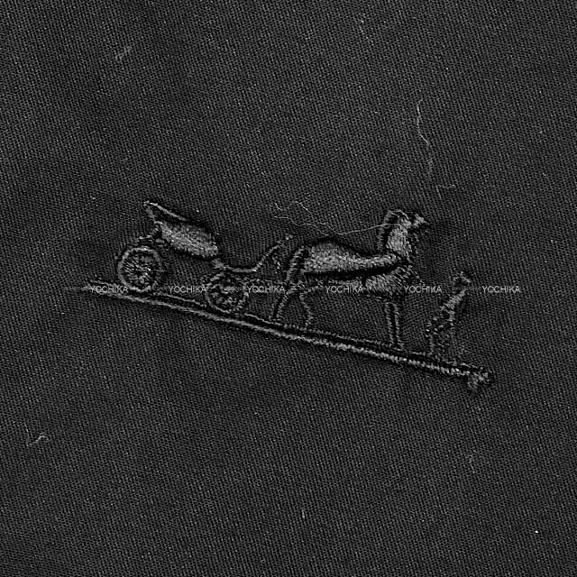 [Pre-loved] HERMES Long sleeve shirt Button Caleche Logo embroidery #34 Noir (Black) Cotton100% #34[LIKE NEW][Authentic]