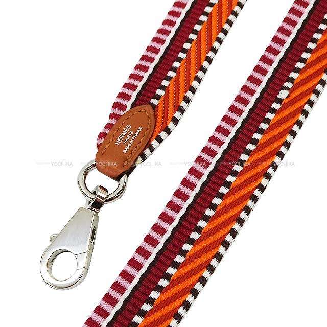 HERMES shoulder strap Bandouliere 25mm 70cm Sangles Caval Orange Minium/Gold/Rose Toile/Swift Silver HW Stamp W[EXCELLENT][Authentic]