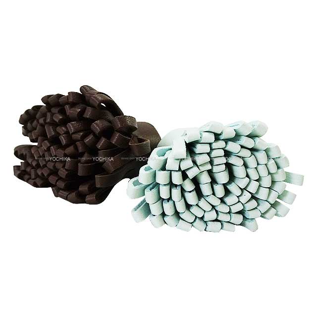 HERMES key ring Carmen Unodos Vert Peppermint/Chocolat Agneau Milo Tuft 1.8 " Silver HW[BRAND NEW][Authentic]