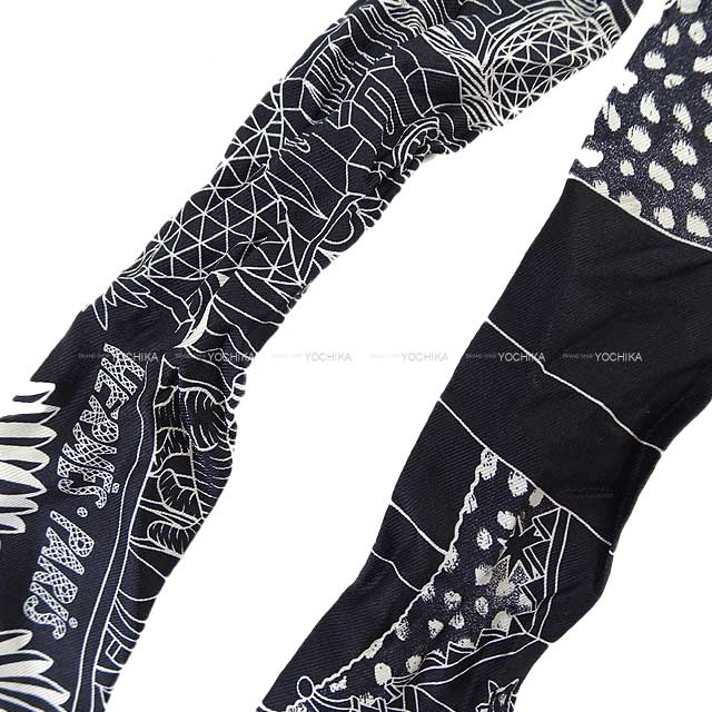 [Pre-loved] HERMES scarf Twilly ANIMA POLIS Noir (Black)/Blanc (White) Silk[USED SA][Authentic]