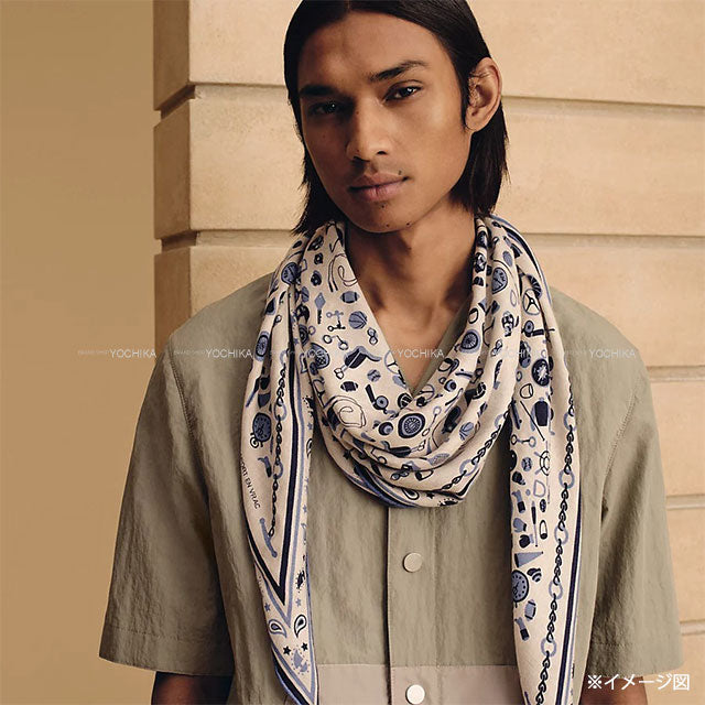 [Pre-loved] HERMES scarf Sport en Vrac Bandana losange naturel / bleu / ciel couvert Cashmere70% / Silk30%[LIKE NEW][Authentic]