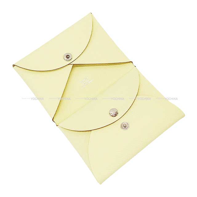 HERMES card holder Calvi Duo Jaune Milton Veau Epsom Silver HW Stamp W[BRAND NEW][Authentic]