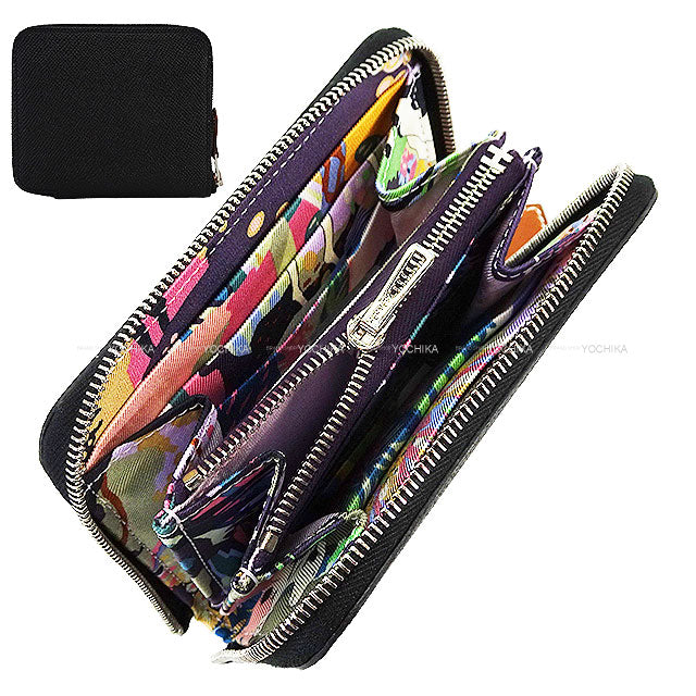 HERMES Bi-fold wallet Azap Silk'in Compact EN LIBERTE! Noir (Black)/Cassis Veau Epsom/Veau Barenia/Silk Silver HW Stamp K[BRAND NEW][Authentic]