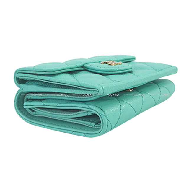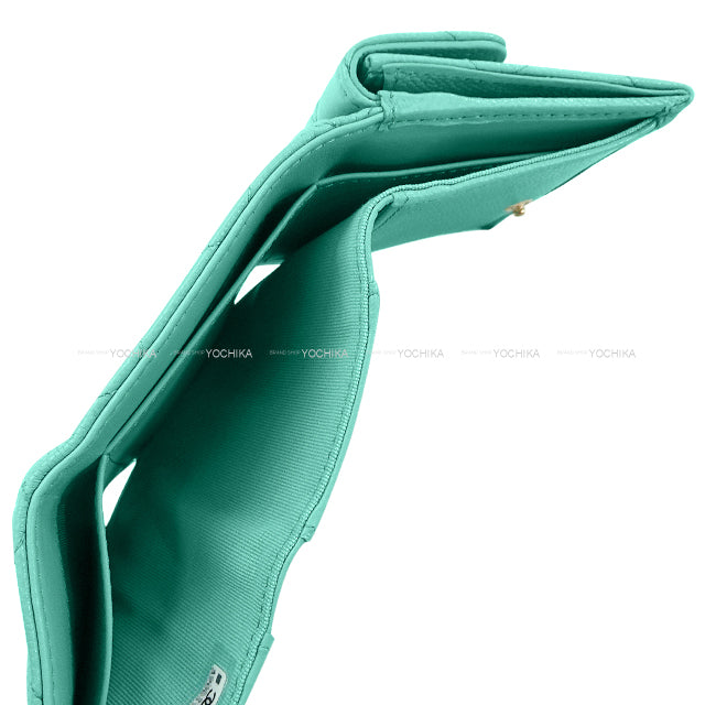CHANEL Tri-fold wallet Matrasse COCO mark compact Turquoise Graind Calf(Caviarskin) Champagne Gold HW AP0230[EXCELLENT][Authentic]