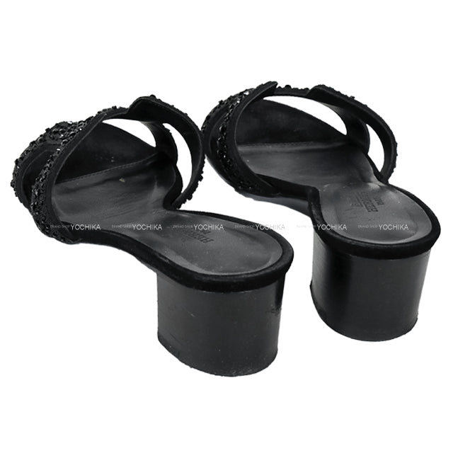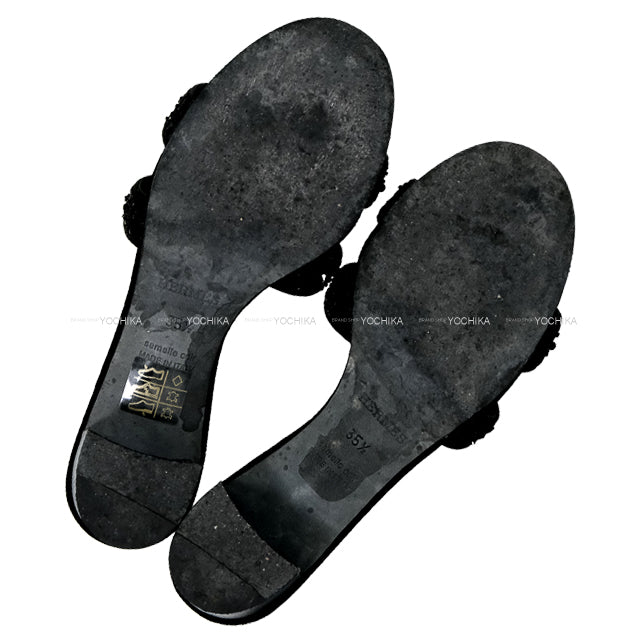 [Pre-loved] HERMES sandals Sandals OASIS Crystal Bijou #35.5 Noir (Black) Goat skin/Strass 35.5[USED A][Authentic]