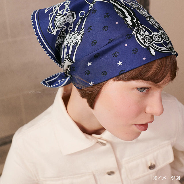 2024AW HERMES scarf Brides et Destin Bandana Marine/Noir (Black)/Blanc (White) Silk100%[EXCELLENT][Authentic]