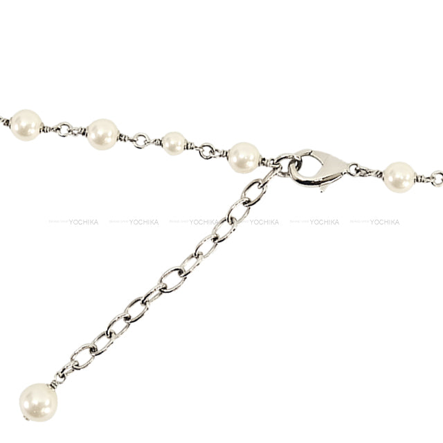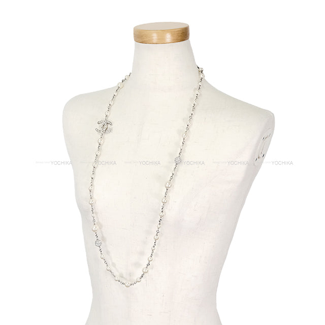 CHANEL necklace Long Star COCO mark Pearl Crystal Rhinestone Fake Pearl Silver HW[EXCELLENT][Authentic]