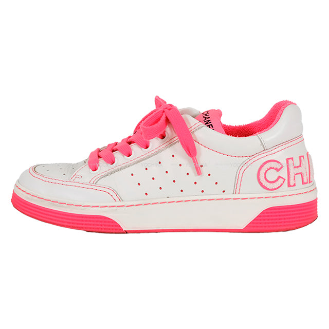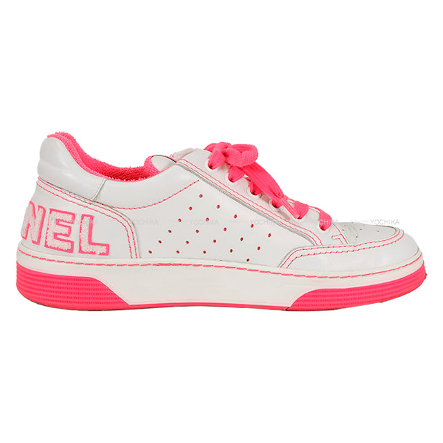 [Pre-loved] CHANEL sneakers Back logo low-frequency cut White/Pink Leather 37 G35934[USED SA][Authentic]