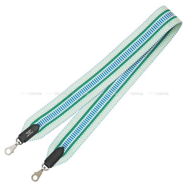 HERMES shoulder strap Bandouliere 50mm 85cm Sangles Caval Vertpale/Vertfiz/Black Toile H/Veau Swift Silver HW Stamp W[BRAND NEW][Authentic]