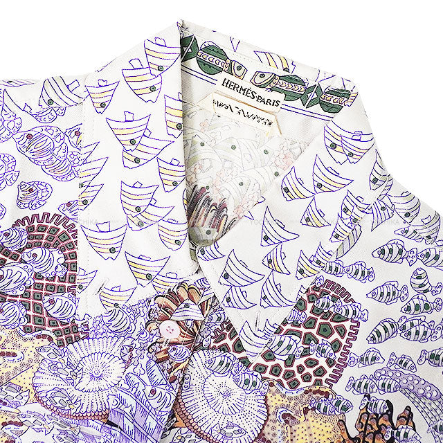 A sleeveless silk blouse has arrived from Hermes. The "Margiela at Hermes" refers to the period from 1997 to 2003 when Martin Margiela was the designer of Hermes' women's ready-to-wear. The timeless design combined with Margiela's mysterious charm has led to the continued popularity. This blouse has a design with fish and coral that makes you look like you're looking into the ocean, and it will make you smile when you see it. Why not try wearing this one-of-a-kind sleeveless blouse when you go out? Color:Purple/Multi Color Material:Silk100% Size:#38 Total length:55cm Body width:46cm Shoulder width:39cm Accessories:No accessories Product Condition: USED SA SKU:25061502
