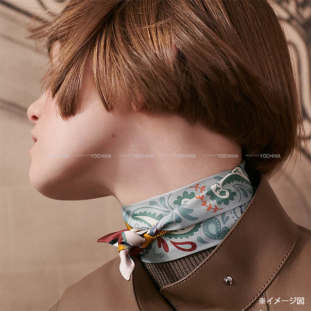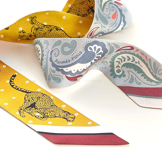 2024AW HERMES scarf Twilly Cheetah bandana Gris Perle/Rouge H/Vert Amande Silk100% H064179S03[EXCELLENT][Authentic]