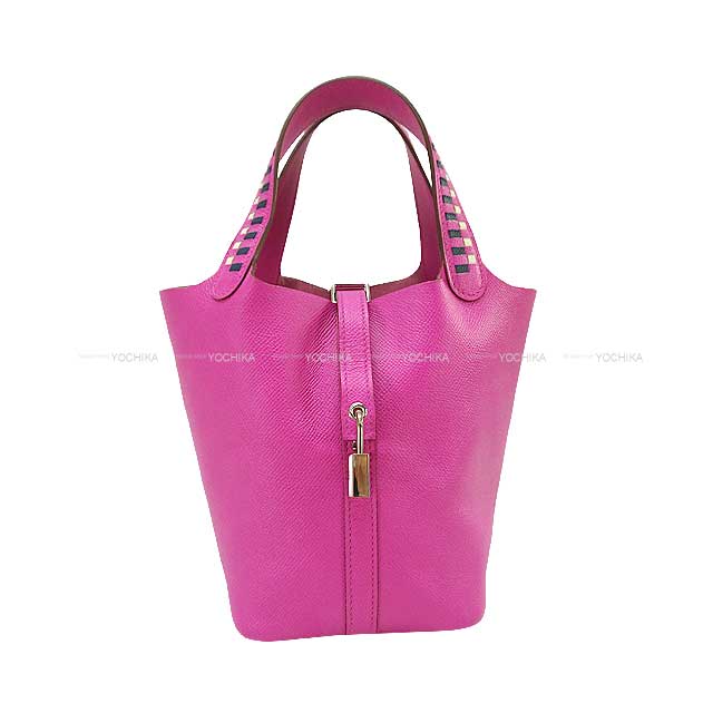 [Pre-loved] HERMES Handbag Picotin Lock 18 PM Tressage De Cuir Magnolia/Bleu Saphir/Craie Veau Epsom Silver HW Stamp C[USED SA][Authentic]