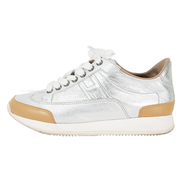 [Pre-loved] HERMES sneakers Quicker Quick Low Cut MetallicSilver/Beige #36[USED A][Authentic]