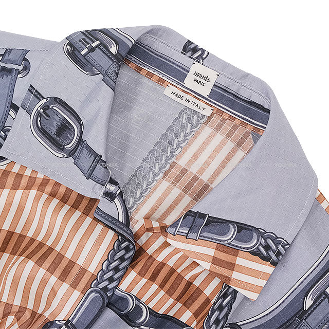 2025SS HERMES One‐piece dress Kaftan One‐piece Dress COACHING REMIX Bleu Grignon Silk100% #34 5E0572D0DJ[BRAND NEW][Authentic]
