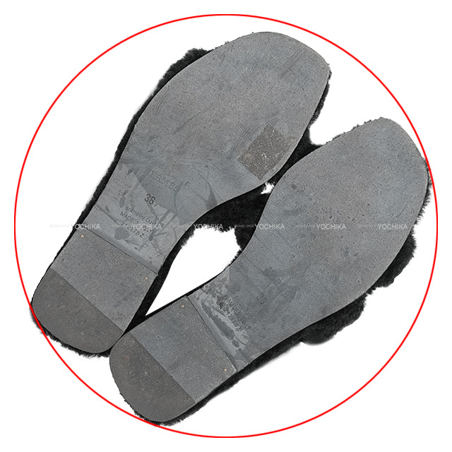 [Pre-loved] HERMES sandals Oran Teddy Bear Mouton Noir (Black) sheepskin 36[USED A][Authentic]