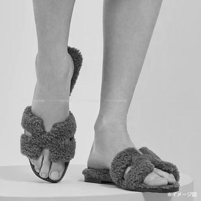 Hermès' casual Oran sandals have arrived! They're made of sheepskin, so they're soft and slightly warm, creating a strange, addictive feeling that will have you coming back for more! They're also great for keeping your feet cool in the air conditioning during the summer! The classic black color means endless combinations! Don't miss this opportunity! Color:Noir (Black)(89) Material:sheepskin