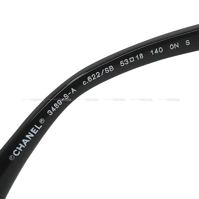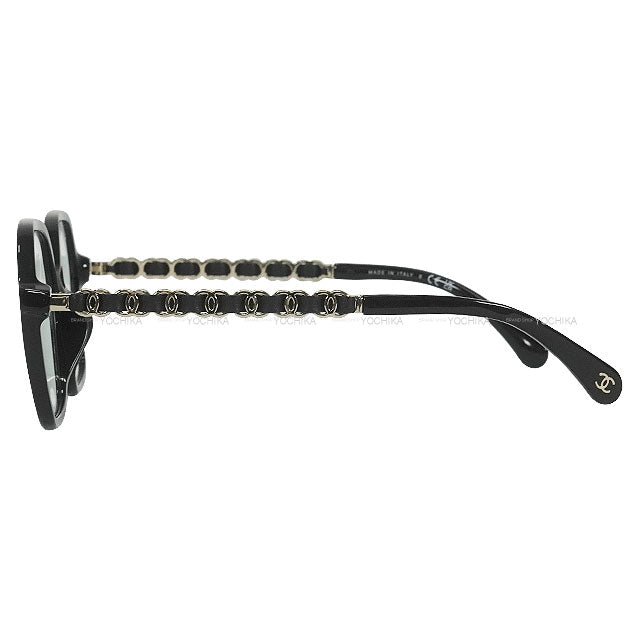 CHANEL sunglass Square Shape Coco Mark Temple Blue Light Cut Noir (Black) Acetate/Calfskin Champagne Gold HW 3489SA[BRAND NEW][Authentic]