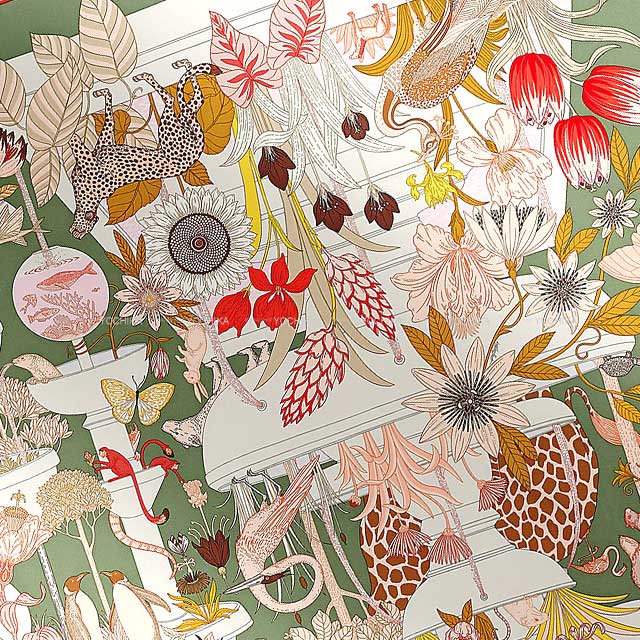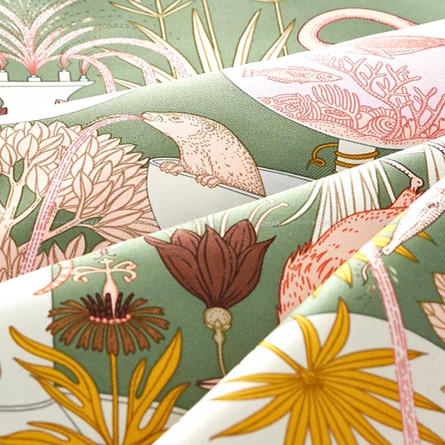 2024 SS HERMES scarf Carre 90 Precious Paradise Kaki/Pink/Red Silk100%[EXCELLENT][Authentic]
