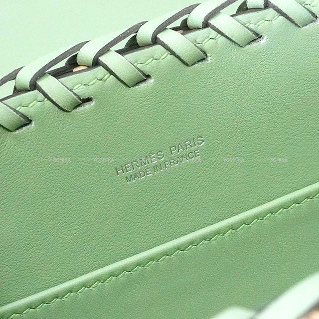 HERMES Shoulder bag Picnic Vert criquet Veau Swift/Osier Wicker (Rattan) Silver HW Stamp B[EXCELLENT][Authentic]