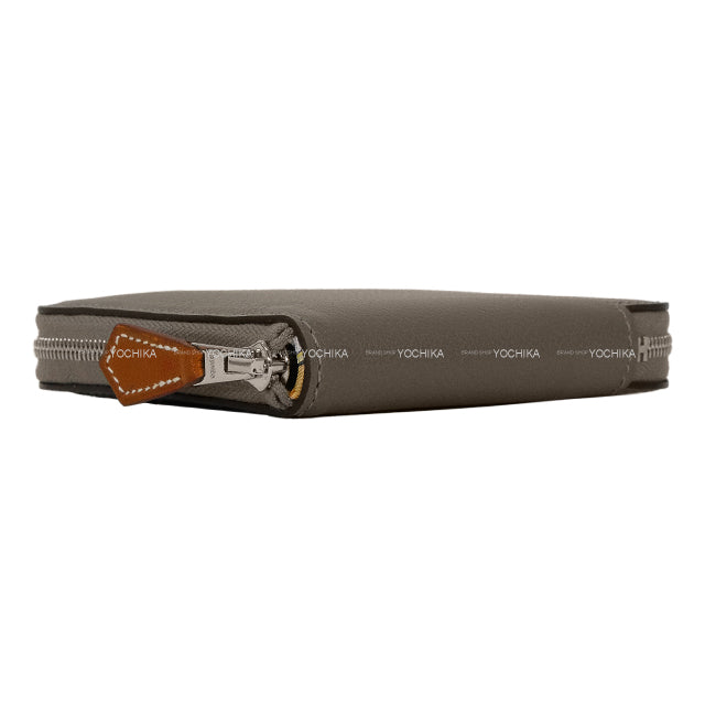 HERMES Bi-fold wallet Azap Silk'in Compact EN LIBERTE! Gris Meyer/Orange Evercolor Silver HW Stamp W[EXCELLENT][Authentic]