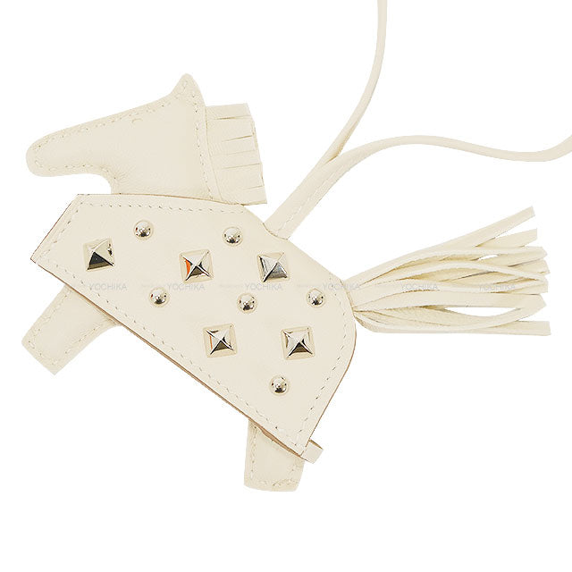 HERMES bag charm Rodeo Robeo Rock PM Studs Craie Agneau Milo Silver HW Stamp K[BRAND NEW][Authentic]