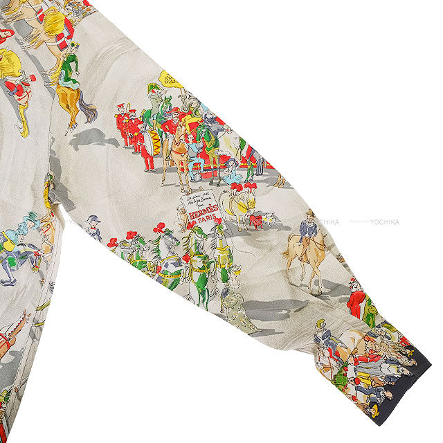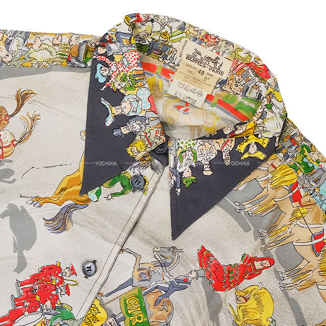 [Pre-loved] HERMES Long sleeve shirt Vintage Parade CIRQUN MOLER Grey/Noir (Black) Silk100% #40[LIKE NEW][Authentic]