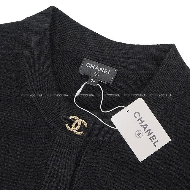 2022 CHANEL Cardigan Long Icon COCO Button Noir (Black) Cashmere #38 Gold HW P73485[EXCELLENT][Authentic]