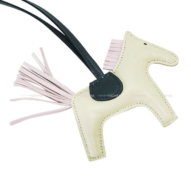 HERMES bag charm Rodeo PM Craie/Rose Sakura/Vert Cypress Agneau Milo Stamp U[EXCELLENT][Authentic]