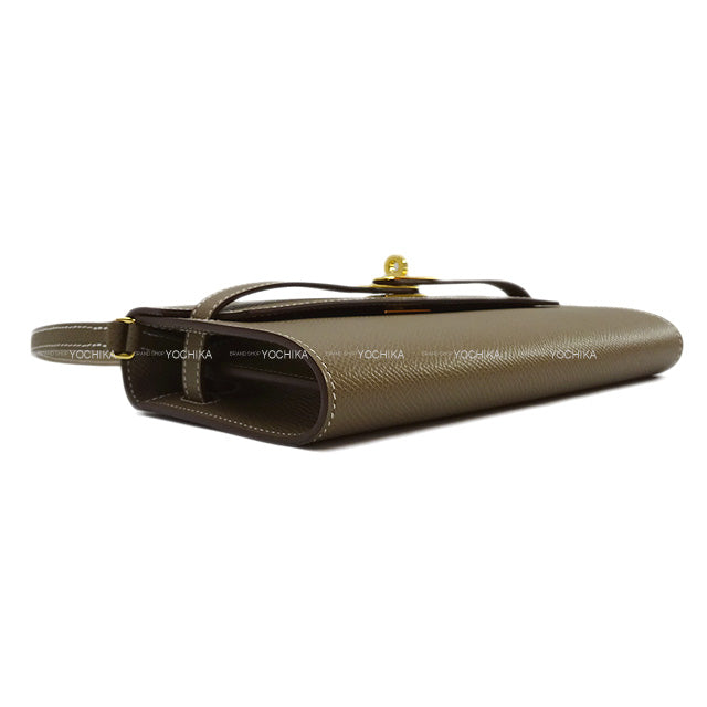 HERMES long wallet Kelly Wallet To Go Etoupe Ever Grain Gold HW Stamp D[EXCELLENT][Authentic]