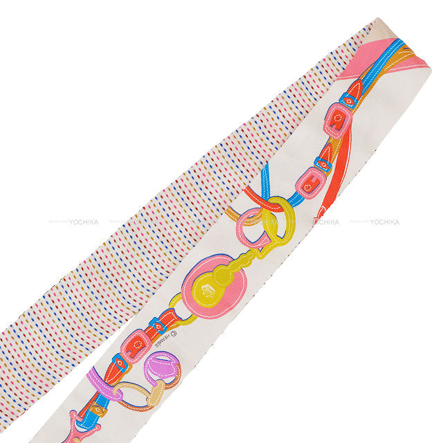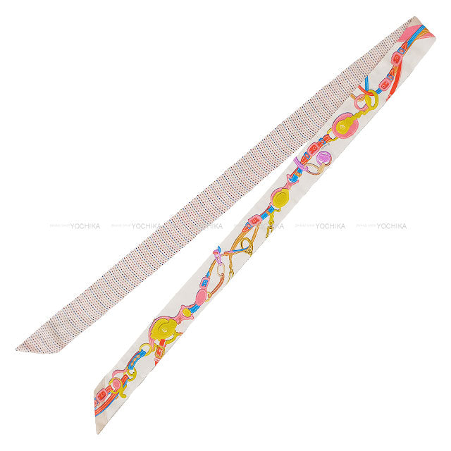 [Pre-loved] 2023SS HERMES scarf Twilly Twins Brides de Gala Blanc (White)/Rose/Blue Silk100%[LIKE NEW][Authentic]