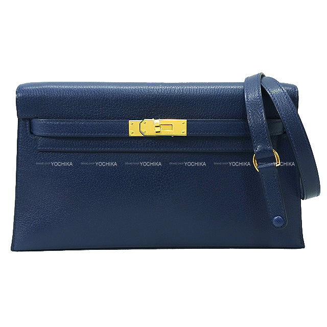 HERMES Clutch bag 2WAY Kelly Elan Bleu Saphir Chevre Chamkila Gold HW Stamp U[BRAND NEW][Authentic]