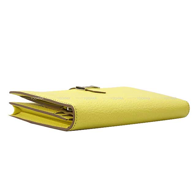 HERMES long wallet Bearn Soufflet Limoncello Chevre Mysore Silver HW Stamp W[EXCELLENT][Authentic]