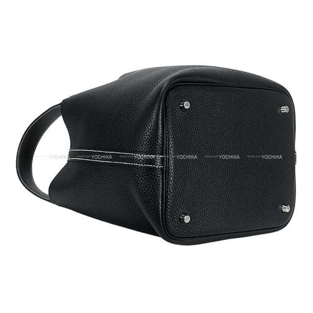 [Pre-loved] HERMES Handbag Picotin Lock 22 MM White Stitch Noir (Black) Taurillon Clemence Silver HW Stamp U[LIKE NEW][Authentic]