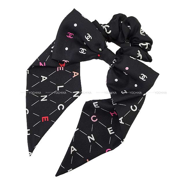 CHANEL hair accessories COCO Mark Ribbon Chouchou Noir (Black)/Multicolor Silk AA9304[BRAND NEW][Authentic]