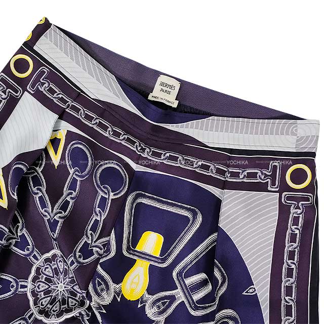2024AW HERMES Pants Women's Twill Laine Kaleidoscope Effect Cropped pajamas Pants Navy Silk 42[BRAND NEW][Authentic]